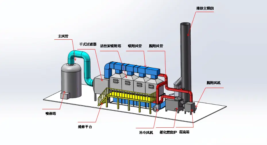 萬川環保涂裝車間VOCs廢氣治理:全面解決方案與創新技術行業廢氣特性分析在工業涂裝車間,廢氣污染主要來源于噴漆、揮發和烘干三大工序。根據具體工況可采用沸石轉輪吸附濃縮技術、蓄熱式熱力燃燒技術、催化燃燒、活性炭吸附等處理方法