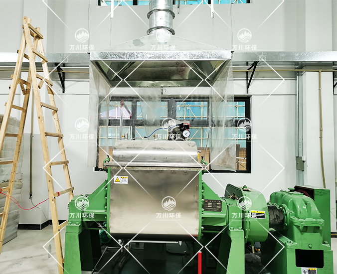 簡介: 東莞市某硅膠科技有限公司主要從事研發、生產、銷售:硅橡膠材料、液態膠及其制品,該公司中設有原材料攪拌車間,在攪拌工序中有大量白碳黑粉塵產生,車間內漂浮白碳黑的粉塵,污染了生產環境。對此,我們東莞粉塵處理公司萬川環保為該公司提供白碳黑粉塵處理解決方案。  根據該公司的實際情況,白碳黑粉塵有易爆以及可回收再次利用的特點,我們采用脈沖布袋除塵器對粉塵進行處理并收集。硅膠攪拌車間  在攪拌機上方設有集氣...