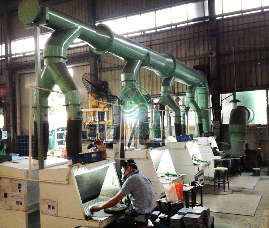 因生產打磨汽車配件時會產生大量的粉塵氣體,秉承對員工生產環境負責的態度,東箭汽車用品廠在對比多家廢氣處理廠家后,最終決定采用萬川環保廢氣處理設備--旋流板除塵塔。